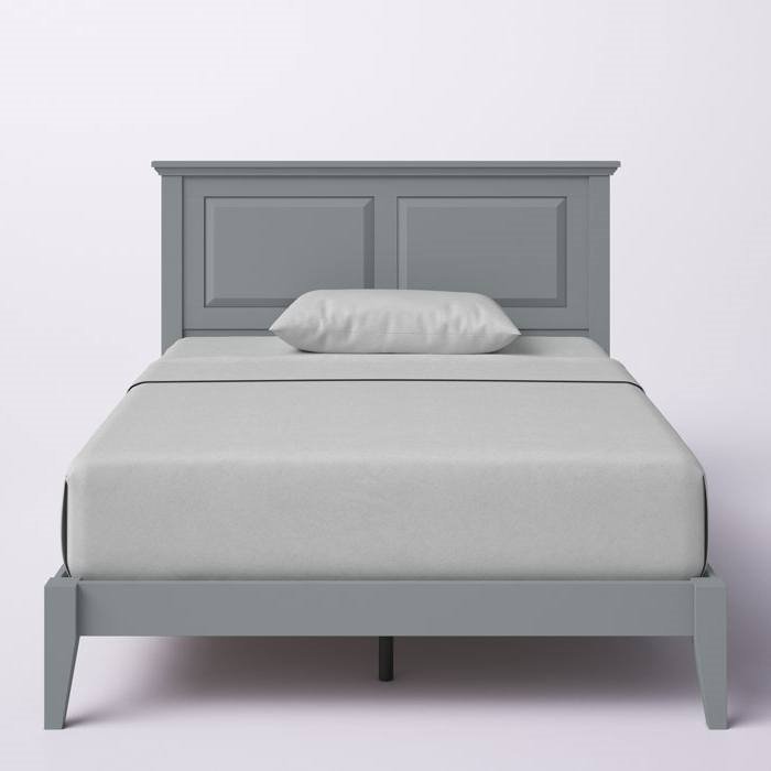 Full Traditional Solid Oak Wooden Platform Bed Frame with Headboard in Grey